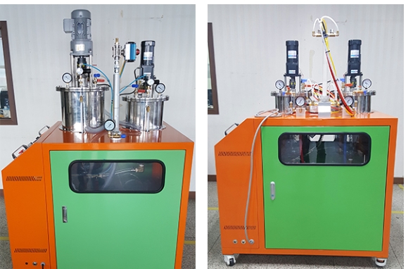액상 탱크 히팅 가능 / 액상 탈포 및 내부 교반 가능